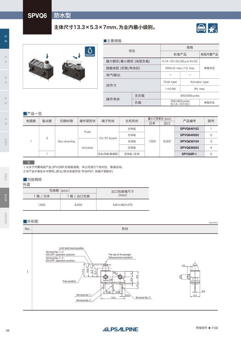 采購:SPVQ6系列——ALPS檢測開關(guān)