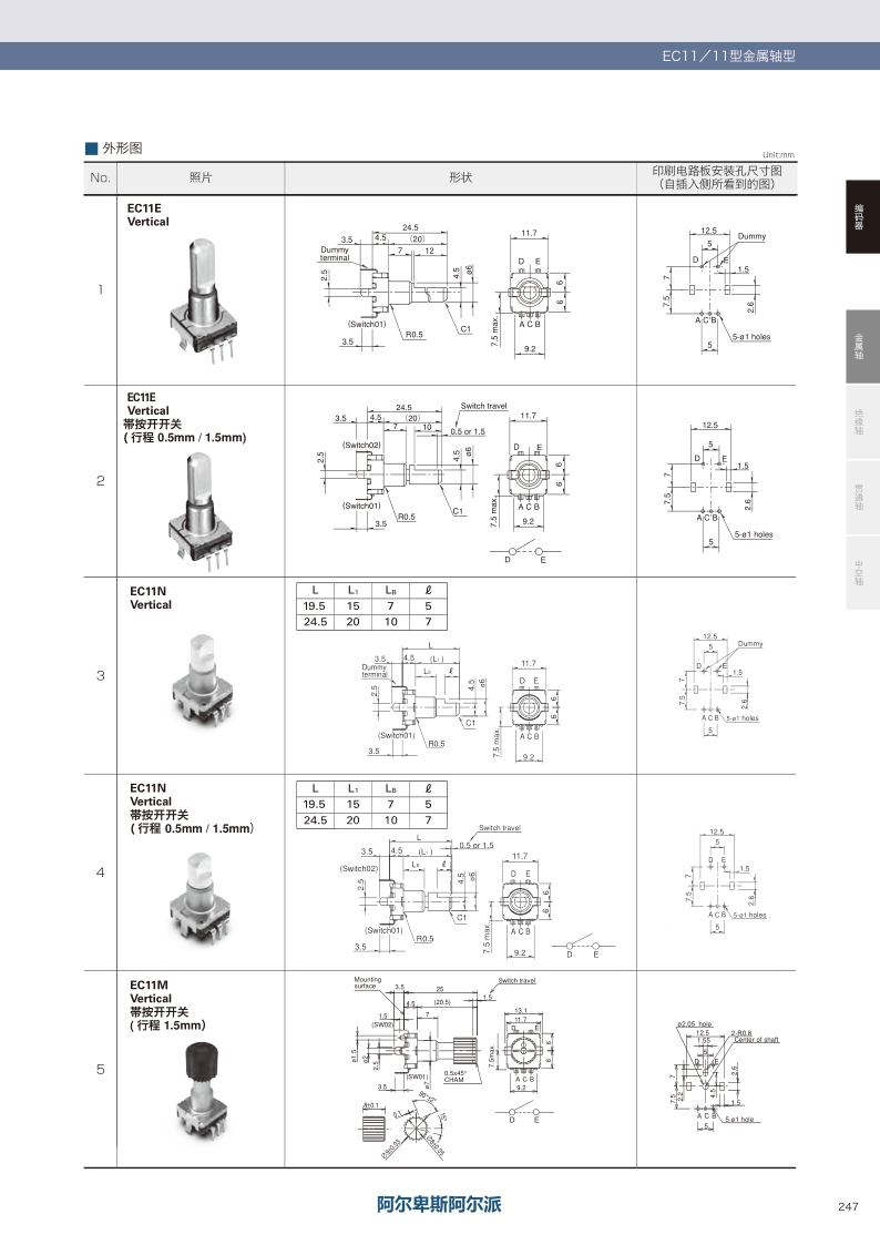 EC1110120005 照片 Vertical 平軸 15mm 無(wú) Self-return switch 無(wú) - 11mm size