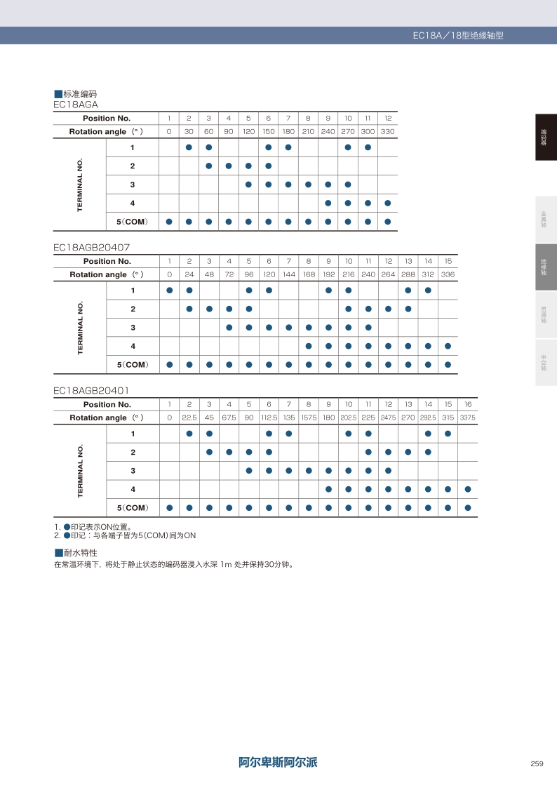 實現(xiàn)了高耐水性、重扭矩的絕對型產品,輸出:絕對型 ? 外形尺寸:18mm size ? 定位數(shù):12 / 15 / 16 ? 脈沖數(shù)(位置數(shù)):12-position / 15-position / 16-position ? 操作壽命:30000 cycles ? 最大額定值:1mA 10V DC。