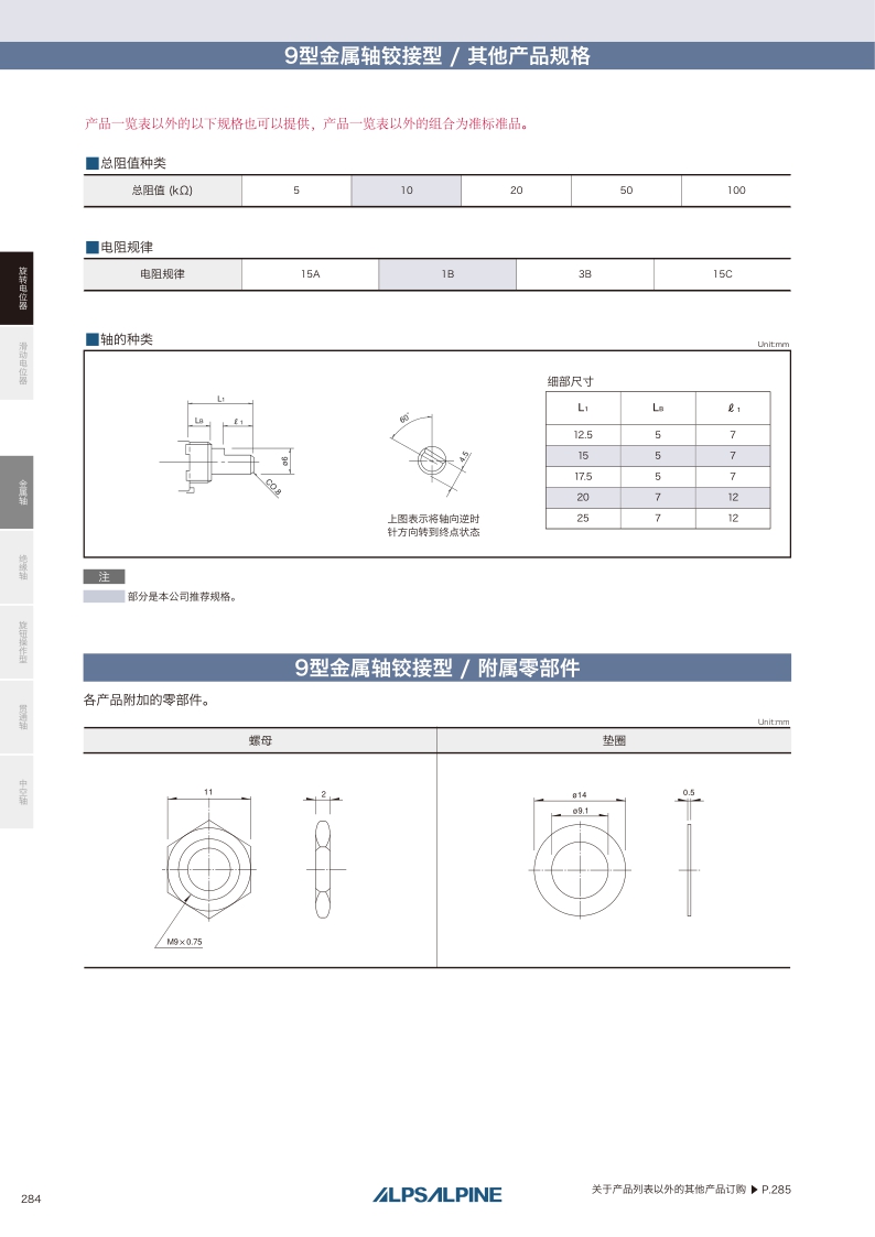 采購(gòu):RK09L系列——ALPS金屬軸電位器