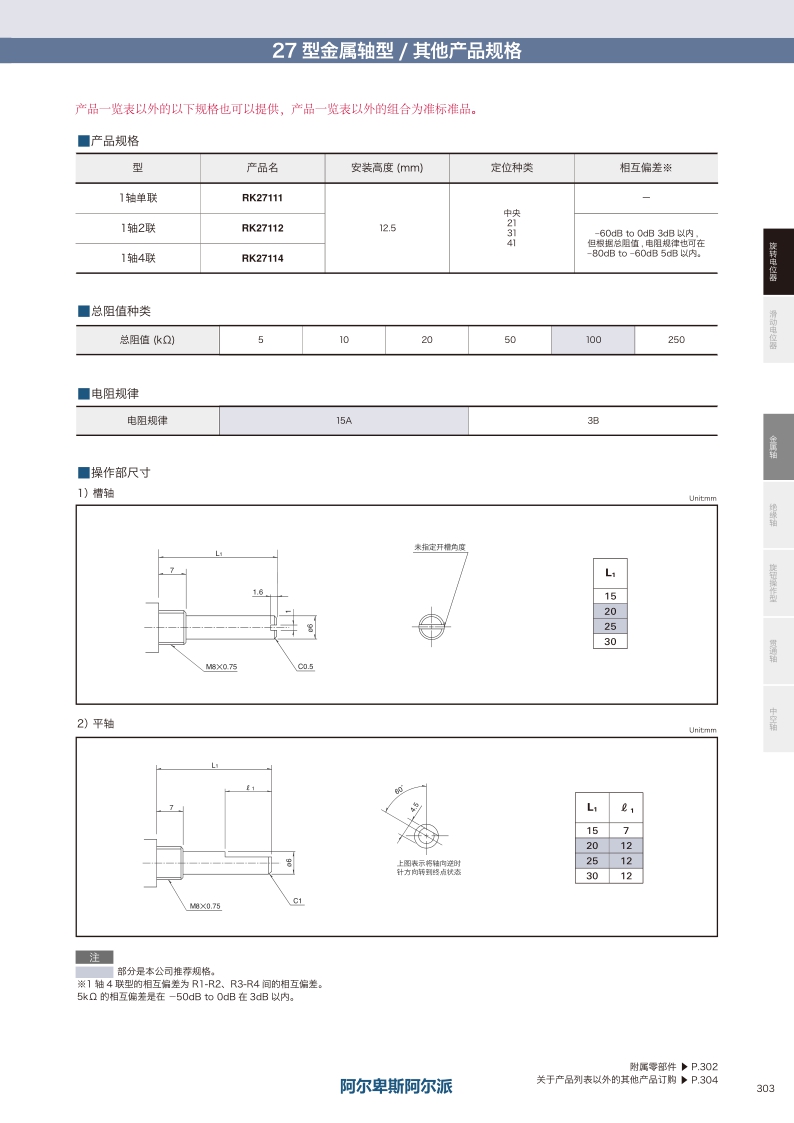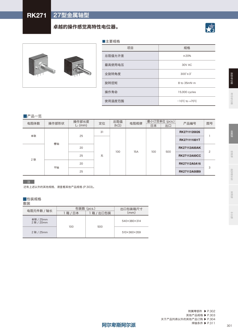 采購(gòu):RK271系列——ALPS金屬軸電位器