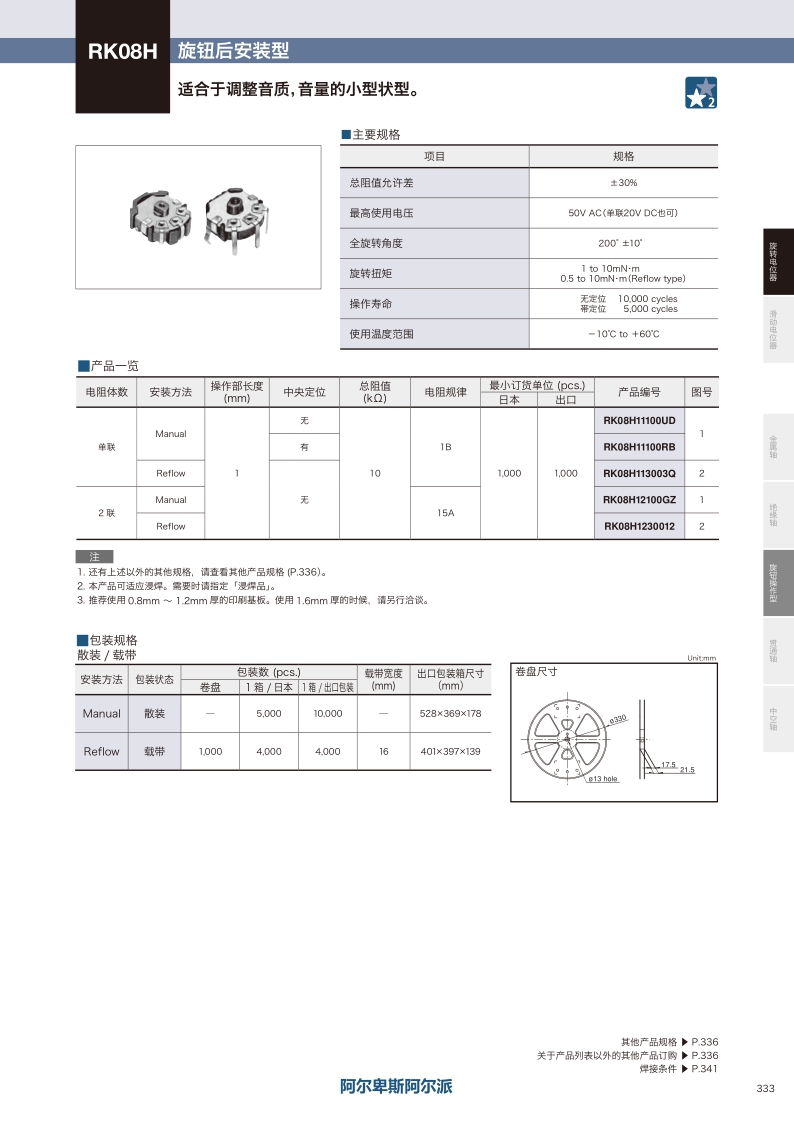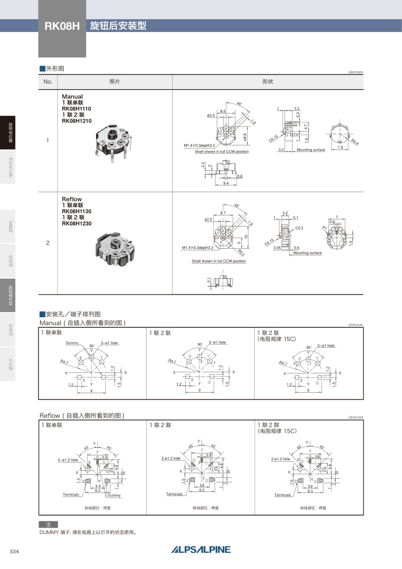 RK08H系列——ALPS旋轉(zhuǎn)電位器