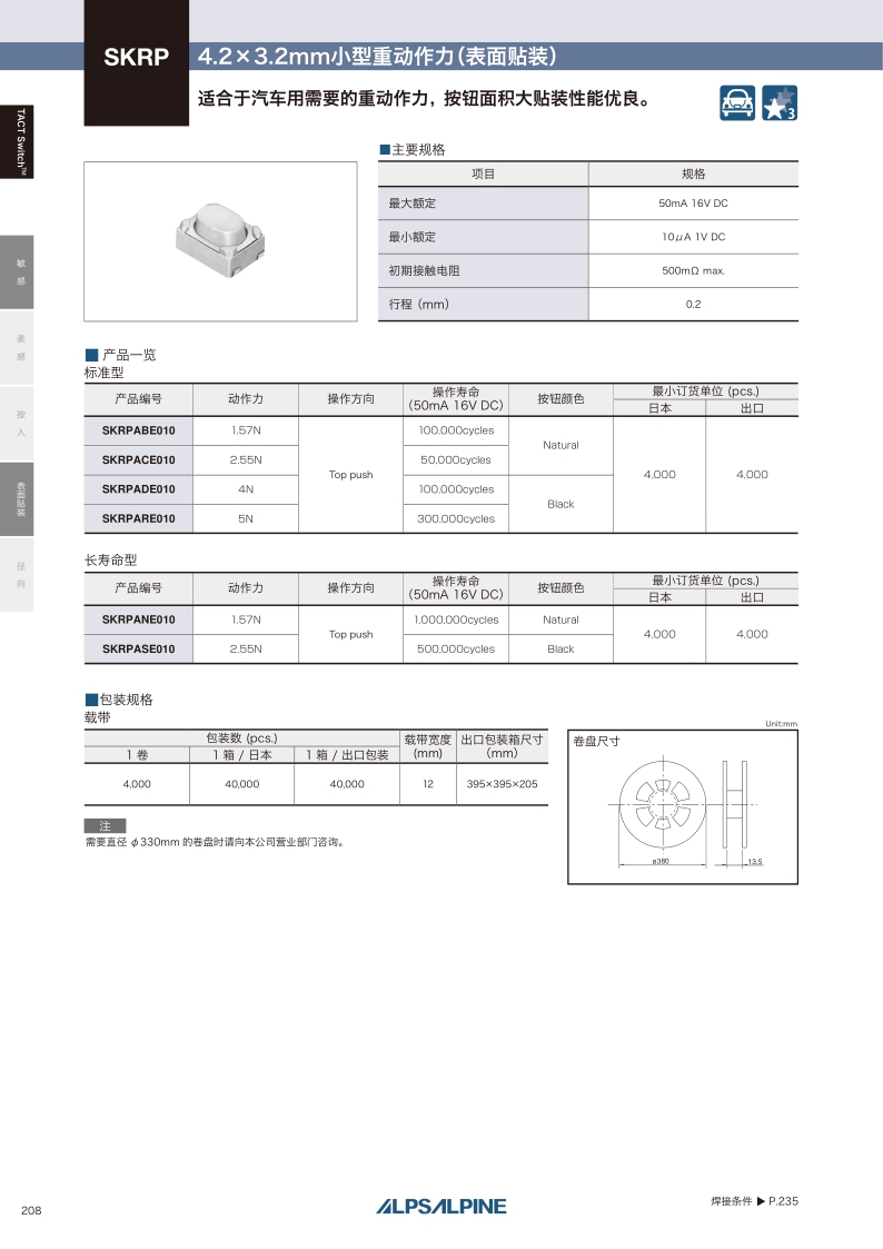 SKRP系列——ALPS輕觸開關(guān)