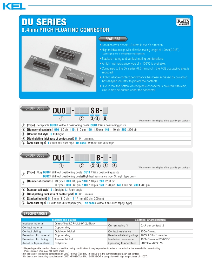 DU系列是業(yè)界最小的0.4mm間距底板對底板浮動連接器,專為小型設(shè)備開發(fā)。業(yè)界最小級別的尺寸可以節(jié)省底板空間。